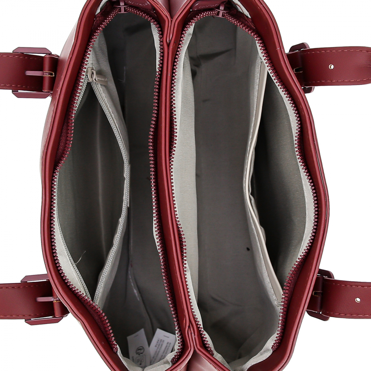 Детали сумки: Два отделения на молниях. Внутри: два кармана для мелочей на передней стенке и карман на молнии на задней стенке.