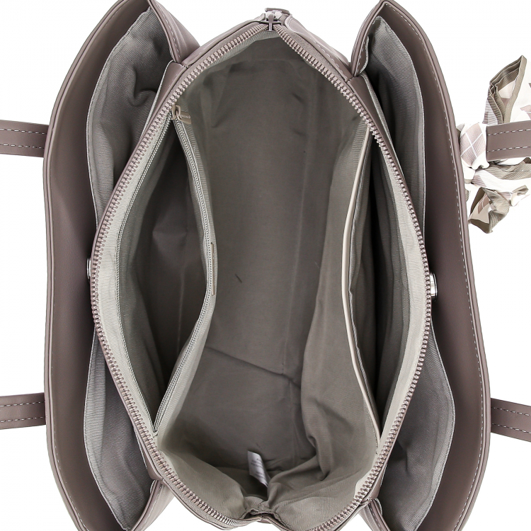 Детали сумки: Три отделения: центральное на молнии, боковые на магнитных замочках. Внутри: карман для мелочей на передней стенке и карман на молнии на задней стенке.