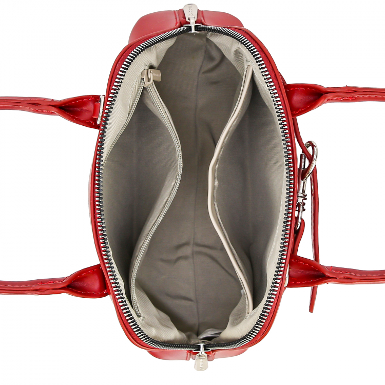 Детали сумки: Одно отделение на молнии. Внутри: карман для мелочей на передней стенке и карман на молнии на задней стенке.
